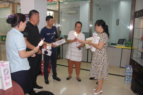 市分公司副總經(jīng)理兼工會(huì)主席魏亞峰率工會(huì)副主席李洪彬等先后慰問了愛民郵政支局、橋北郵政支局和愛民投遞部,親手把精美實(shí)用的小風(fēng)扇發(fā)放到職工手中,并當(dāng)場(chǎng)給職工們演示小風(fēng)扇的功能和如何使用,并詢問了解職工的工作生活情況,悉心囑咐職工們要注意防暑,勞逸結(jié)合,讓所有的職工們深受感動(dòng)。收到慰問品的職工們都特別高興,一致稱贊市分公司工會(huì)發(fā)放的風(fēng)扇即實(shí)用又美觀,還能當(dāng)個(gè)小臺(tái)燈,員工們拿著風(fēng)扇個(gè)個(gè)愛不釋手,每個(gè)員工的臉上都洋溢著甜甜的笑容。市分公司蔡寶偉副總經(jīng)理率人力資源主任鞏福興、副主任郭鐳等先后慰問了陽明郵政支局、7個(gè)投遞部、信息技術(shù)中心和機(jī)要通信分局,為他們送去了精美實(shí)用小風(fēng)扇和礦泉水,為職工們吹去了汗水,暖了人心!蔡寶偉副總經(jīng)理每到一處都詳細(xì)詢問了網(wǎng)點(diǎn)收入和經(jīng)營(yíng)情況,對(duì)陽明中心營(yíng)業(yè)所現(xiàn)場(chǎng)擺放銷售的分銷產(chǎn)品的銷售情況和價(jià)格情況進(jìn)行了了解,對(duì)柜員收寄包裹嚴(yán)格驗(yàn)視給予了充分肯定,對(duì)郵務(wù)網(wǎng)點(diǎn)進(jìn)度排名第一給予高度評(píng)價(jià)。耿洪民副總經(jīng)理率市場(chǎng)營(yíng)銷部主任孫振波等先后慰問了西安區(qū)分公司和東安區(qū)分公司網(wǎng)點(diǎn),為網(wǎng)點(diǎn)職工們送去了企業(yè)的關(guān)懷、精美實(shí)用小風(fēng)扇和礦泉水。耿洪民副總經(jīng)理每到一處網(wǎng)點(diǎn)都仔細(xì)詢問網(wǎng)點(diǎn)業(yè)務(wù)發(fā)展情況,業(yè)務(wù)發(fā)展中的阻力以及職工在生產(chǎn)生活中遇到的困難等,并囑咐大家在高溫天氣下工作一定注意身體,多喝綠豆水等飲品清涼止渴,在確保安全生產(chǎn)的前提下,保證各項(xiàng)業(yè)務(wù)正常有序發(fā)展。