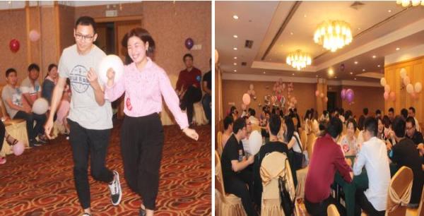活動現(xiàn)場,浪漫的粉色氣球拍照區(qū)、巨大的粉色表白墻顯得格外引人矚目。持續(xù)4 個多小時的聯(lián)誼活動,流程安排相當(dāng)緊湊?!皠?chuàng)意團隊展示”、“串名字游戲”、“夾氣球”等環(huán)節(jié),不一而足。大部分的單身青年男女都是第一次參加聯(lián)誼活動,既感到新鮮刺激又感到靦腆羞澀。聯(lián)誼會剛開始,他們只是靜坐,后來看到活動逐漸活躍,也紛紛加入互動游戲、交流中。隨著各種游戲以及歌舞的穿插互動,讓現(xiàn)場的熱烈氣氛指數(shù)不斷爆表,單身青年們打開相識之門,交談甚歡。活動結(jié)束后,不少單身男女嘉賓互相留號碼、相約吃夜宵,以進一步交流。
