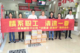 全市郵政各基層單位積極行動、接力傳遞“送清涼”活動,陸續(xù)開展高溫慰問活動。各基層單位領(lǐng)導(dǎo)、工會主席帶隊深入一線,慰問生產(chǎn)崗位上的基層員工。