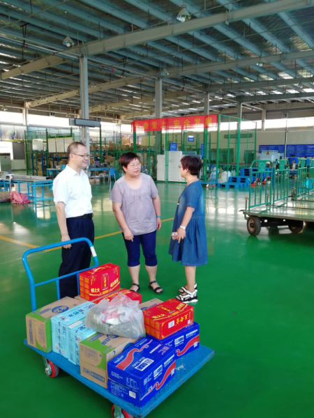 近期,伏天高溫,熱浪襲人,郵通公司領(lǐng)導(dǎo)班子成員分別赴大樓物業(yè)部、國(guó)際郵件互換局、電商園物業(yè)部、智能倉(cāng)儲(chǔ)中心,對(duì)堅(jiān)守在工作崗位的一線工作人員進(jìn)行慰問(wèn),堅(jiān)持以人為本,把關(guān)心職工工作落在實(shí)處。 7月27日上午,郵通公司領(lǐng)導(dǎo)赴大樓物業(yè)部,為大樓物業(yè)部勤懇辛勞的員工送去防暑降溫用品并與員工深入交談,了解員工的工作狀態(tài)及精神面貌及員工生活工作中存在的問(wèn)題,強(qiáng)調(diào)了安全生產(chǎn)、提高消防安全意識(shí)的重要性,并叮囑大家專注工作的同時(shí)注意勞逸結(jié)合,做好防暑降溫措施,確保身體健康。 8月1日上午,郵通公司領(lǐng)導(dǎo)赴國(guó)際郵件互換局、電商園物業(yè)、智能倉(cāng)儲(chǔ)中心進(jìn)行高溫慰問(wèn),為奮斗在生產(chǎn)一線的員工送去親切問(wèn)候及綠豆、砂糖、飲料、藥品等防暑降溫用品。領(lǐng)導(dǎo)班子向不懼高溫,奮斗在工作崗位的員工表示慰問(wèn)及感謝,強(qiáng)調(diào)防暑降溫、安全生產(chǎn)的重要性,要求員工做好防護(hù)工作,強(qiáng)化安全措施,確保安全度夏。