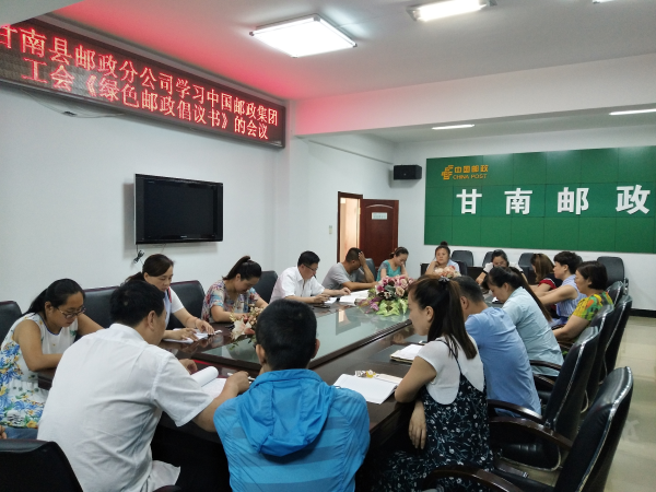 在接到中國(guó)郵政集團(tuán)工會(huì)《綠色郵政倡議書》的通知后,甘南縣郵政分公司領(lǐng)導(dǎo)班子高度重視立即行動(dòng)起來(lái)。該局組織召開了全員大會(huì),傳達(dá)了《綠色郵政倡議書》的內(nèi)容,并由工會(huì)主席做了進(jìn)一步講解,要求必須嚴(yán)格按照《倡議書》內(nèi)容落實(shí)到位并開展了系列綠色活動(dòng)。