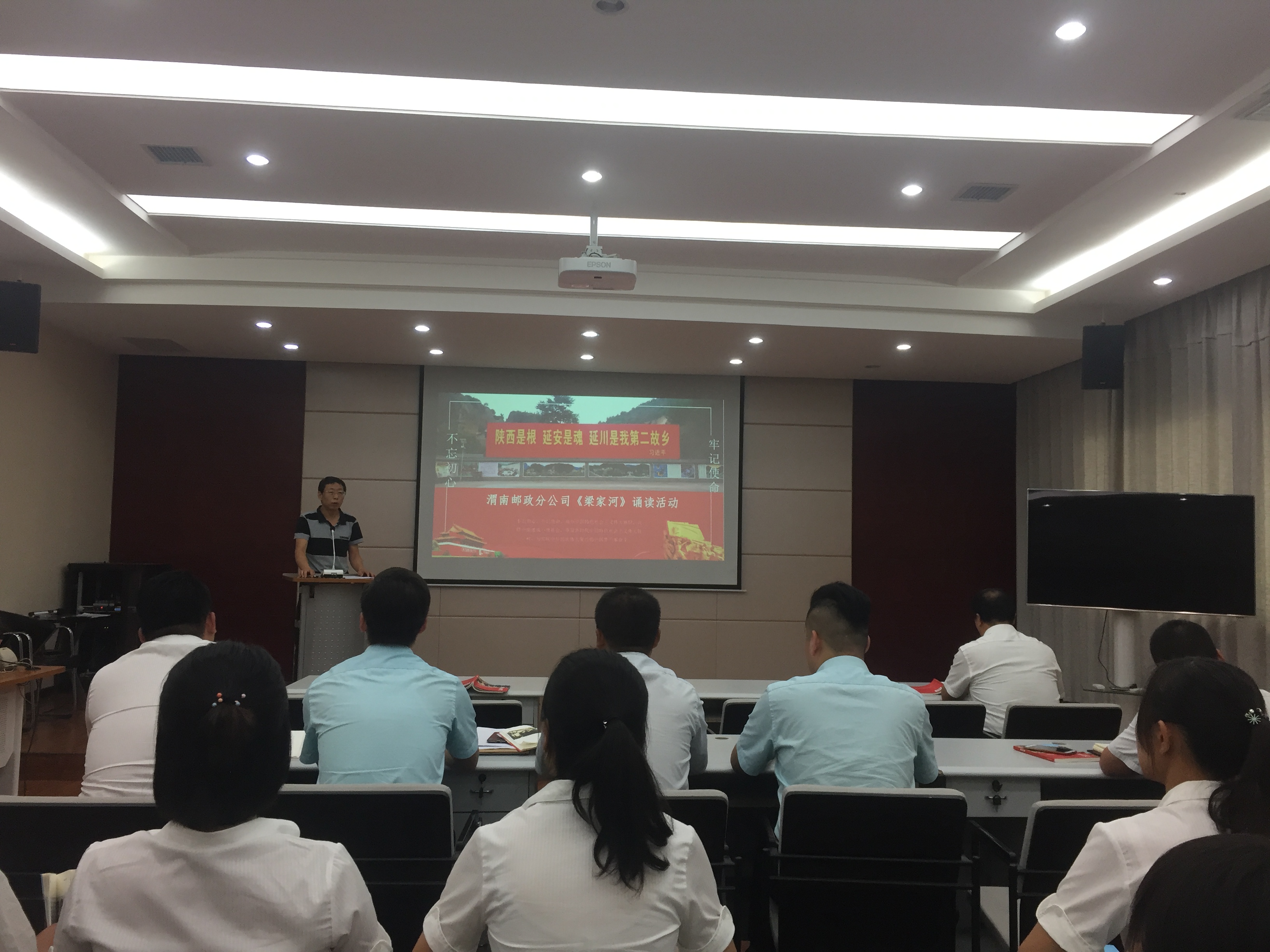 8月22日上午,由渭南郵政分公司舉辦的《梁家河》誦讀分享活動(dòng)在市分公司九樓業(yè)務(wù)演示廳如期舉行。此次活動(dòng)的主題是“不忘初心,牢記使命”專題讀書分享。來自全市工會主席、文明職工、先進(jìn)標(biāo)桿人物、優(yōu)秀黨員、優(yōu)秀工會干部及工會積極分子等30余人參加了活動(dòng)。