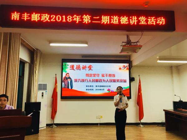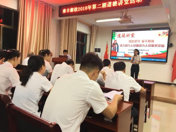 為深入貫徹習(xí)近平新時(shí)代中國(guó)特色社會(huì)主義思想和黨的十九大精神,扎實(shí)推進(jìn)社會(huì)主義核心價(jià)值觀,9月11日,南豐縣分公司舉辦2018年第二期道德講堂活動(dòng),縣分公司全體員工參加了活動(dòng)。此次活動(dòng)旨在用勞模先進(jìn)榜樣人物,教導(dǎo)全體員工要深入踐行人民郵政為人民服務(wù)的宗旨,大力弘揚(yáng)郵政人愛(ài)崗敬業(yè)、篤定堅(jiān)守、實(shí)干擔(dān)當(dāng)?shù)膬?yōu)良作風(fēng),提升干部職工的道德素養(yǎng)和文明程度,為南豐郵政品質(zhì)發(fā)展凝聚士氣。