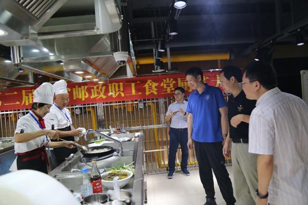 清湯下鍋的舟山大黃魚,皮色金黃,并佐以質(zhì)地鮮脆的雪里蕻,浸潤在乳白色的湯汁里,熠熠生輝;刀功均勻的青椒絲與紅色的里脊肉絲在熱鍋中翻滾,出鍋后呈現(xiàn)出完美的顏色搭配,讓人賞心悅目......8月30日下午,來自浙江全省郵政職工食堂的12代表隊(duì)共24位廚師選手們齊聚杭州,參加由浙江省郵政工會(huì)主辦的第二屆全省郵政職工食堂廚藝大賽,并在浙江省餐飲協(xié)會(huì)的專業(yè)場地大顯身手,展開了一場廚藝大比拼。浙江省分公司黨組書記、總經(jīng)理陳清親臨大賽現(xiàn)場看望選手,觀摩比賽。
