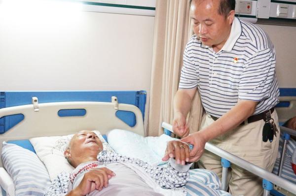 2018年6月,胡保平在江西中醫(yī)院看望83歲的退休干部余定坤。
