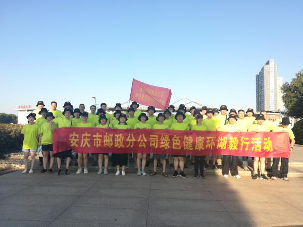 8月29日早上7:00,安慶市郵政工會組織開展了“綠色健康環(huán)湖毅行”活動,來自市分公司的近70名員工參加了活動。此次活動是安慶郵政“綠色郵政”主題系列活動之一,大家身著統(tǒng)一的綠色T恤衫,宣傳綠色健康生活理念,展現(xiàn)了安慶郵政員工的綠色文明形象。