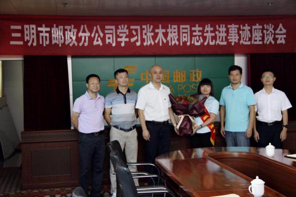 為更好地發(fā)揮先進(jìn)典型的示范引領(lǐng)作用,9月25日下午,三明市分公司召開學(xué)習(xí)張木根同志先進(jìn)事跡座談會(huì)。市分公司領(lǐng)導(dǎo)班子成員、各部門負(fù)責(zé)人、金融部全體人員參加了座談會(huì)。黨委書記、總經(jīng)理黃漢榕為載譽(yù)歸來(lái)的全國(guó)郵政系統(tǒng)先進(jìn)個(gè)人張木根同志獻(xiàn)花,與會(huì)人員暢談學(xué)習(xí)張木根同志先進(jìn)事跡的體會(huì)。