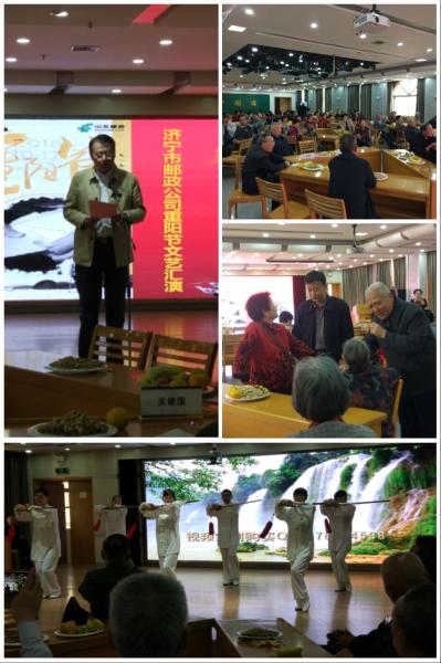 金秋十月,九九重陽。為深入踐行黨的十九大精神,把黨的十九大提出的新思想、新觀點(diǎn)、新要求落實(shí)到文化工作中去,不斷豐富濟(jì)寧郵政離退休職工業(yè)余文化生活,弘揚(yáng)愛老、敬老的傳統(tǒng)美德。近日,濟(jì)寧分公司成功舉辦九九重陽節(jié)文藝匯演。市分公司黨委成員、退休老領(lǐng)導(dǎo)以及市公司各部門主要負(fù)責(zé)人、退休職工及在職職工代表100余人參加了本次活動(dòng)。首先市公司黨委委員、工會(huì)主席綦偉同志發(fā)表了熱情洋溢的致辭,工會(huì)副主席張建忠同志匯報(bào)了今年以來企業(yè)發(fā)展情況,隨后文藝匯演在一首《日子越來越好》中拉開序幕,舞臺(tái)上太極拳表演、京劇豫劇演唱等一個(gè)個(gè)精彩節(jié)目圍繞孝老愛親、奉獻(xiàn)青春、熱愛祖國等主題輪番上演。嘉賓席里歡歌笑語、掌聲不斷,離退休職工與在職職工一起度過了一個(gè)意義非凡的重陽佳節(jié)。