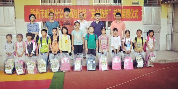 10月17日,是第五個(gè)國(guó)家扶貧日。當(dāng)日,贛州市郵政工會(huì)在市分公司精準(zhǔn)扶貧點(diǎn)——尋烏縣南橋鎮(zhèn)高排村,舉行了安全防護(hù)書(shū)包捐贈(zèng)儀式。