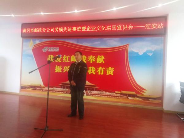 10月22-26日,黃岡市分公司組織開展了勞模先進(jìn)事跡暨企業(yè)文化巡回宣講活動(dòng),旨在認(rèn)真落實(shí)集團(tuán)公司和省分公司企業(yè)文化宣貫要求,弘揚(yáng)勞模精神,促使郵政企業(yè)文化落地生根。各縣市區(qū)分公司班子成員、機(jī)關(guān)全體人員、支局長(zhǎng)以及基層職工代表參會(huì)學(xué)習(xí)。