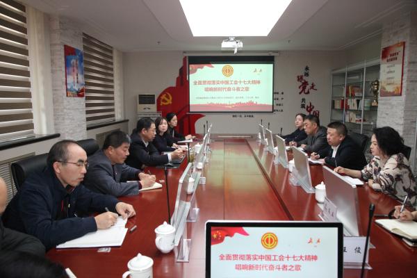 會(huì)議介紹了中國(guó)工會(huì)十七大召開的總體情況,指出這次大會(huì)是在我國(guó)進(jìn)入全面建成小康社會(huì)決勝階段、中國(guó)特色社會(huì)主義進(jìn)入新時(shí)代召開的一次重要會(huì)議,是全國(guó)工會(huì)和億萬(wàn)職工群眾政治生活中的一件大事,對(duì)于推動(dòng)新時(shí)代中國(guó)工運(yùn)事業(yè)新發(fā)展具有重大的意義。會(huì)議認(rèn)真學(xué)習(xí)了習(xí)近平同中華全國(guó)總工會(huì)新一屆領(lǐng)導(dǎo)班子集體談話的重要講話、李克強(qiáng)總理在大會(huì)上作的經(jīng)濟(jì)形勢(shì)報(bào)告、王滬寧同志代表黨中央向大會(huì)的致辭和王東明主席所作的工作報(bào)告主要精神,以及中國(guó)工會(huì)章程最新修改的主要內(nèi)容。
