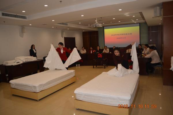 為開展好此項活動,該部制定了詳細的實施方案,活動分為三個階段:9月 22日-10月21日為業(yè)務(wù)技能培訓(xùn)與崗位練兵階段,10月22日-10月31日為崗位技能競賽初賽階段,11月10日之前為崗位技能競賽決賽階段。競賽分為知識測試和實操競賽兩部分,其中知識測試包括筆試和現(xiàn)場競答兩種方式,主要考核部門管理與服務(wù)理念、員工守則、安全制度和業(yè)務(wù)知識等內(nèi)容。實操競賽涵蓋客房、餐飲、工程等各項業(yè)務(wù)與服務(wù)核心技能,主要包括客房鋪床、會議服務(wù)規(guī)范、中餐宴會擺臺及托盤、菜品制作、消防技能操作、維修技能操作與故障排除、高壓配電技能操作、多媒體設(shè)備調(diào)測和管工、鉗工、制冷技術(shù)等。學(xué)院工會副主席魏超現(xiàn)場觀摩并指導(dǎo)了競賽活動。