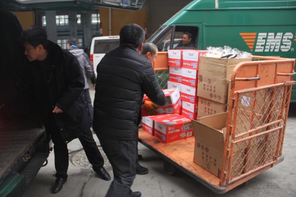 11月15日,正是“雙十一”郵件進(jìn)出口高峰,早上9:00點(diǎn),市分公司總經(jīng)理李剛,副總經(jīng)理兼工會主席魏亞峰帶領(lǐng)綜合辦公室、工會相關(guān)人員來到寄遞事業(yè)部和運(yùn)營管理部(網(wǎng)路運(yùn)營中心),慰問看望奮戰(zhàn)在這里的郵運(yùn)和投遞一線的干部員工,給他們送去了方便面、火腿腸、面包、速凍餃子等第一批慰問品。向員工們表達(dá)了省公司和市分公司領(lǐng)導(dǎo)的關(guān)心與問候。