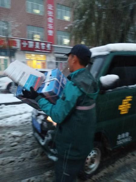 在前幾日的暴雪之后,雙鴨山市集賢分公司迎來了“雙十一”的第一個郵件進(jìn)口高峰。道路結(jié)冰,城市積雪,給投遞生產(chǎn)工作帶來了不小的壓力。