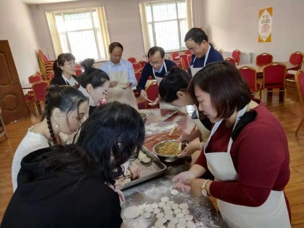 在熱熱鬧鬧的食堂里,大家都各顯伸手,有揉面的、有搟皮的、有負(fù)責(zé)包的,忙得不易樂乎。人多力量大,一個多小時的時間2000多個餃子就包好了。為了能讓員工吃的可口,特意包了酸菜陷和芹菜陷的蒸餃和水餃。剛包完餃子,轉(zhuǎn)運車進來了,孫立春總經(jīng)理領(lǐng)導(dǎo)班子成員一行又去了工作場地。