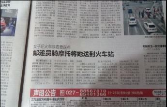 正在著急上火的丁芳突然眼睛一亮,發(fā)現(xiàn)一名30歲左右?guī)е坨R,穿著綠色郵政制服的男子,騎著一輛綠色的郵政字樣的摩托車過來了。她連忙攔下了這輛摩托,說自己急著趕5點(diǎn)鐘的火車。這名正在征訂報(bào)刊的郵遞員很和氣地安慰道:“快上車,過中涵洞后從戰(zhàn)備站臺(tái)繞過去,這路我熟悉,也許還趕得上!”
