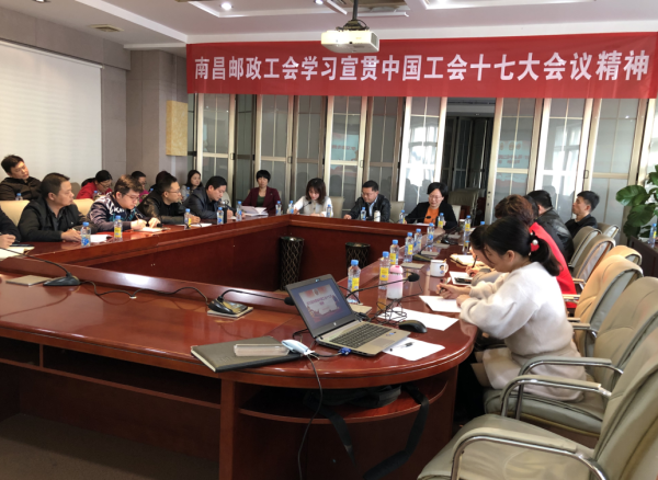 為深入學習宣傳貫徹習近平總書記重要講話精神和中國工會十七大精神,11月29日下午,南昌市郵政工會組織召開學習宣傳貫徹中國工會十七大精神專題會。市分公司副總經(jīng)理、工會主席雷武高及各部門工會主席、專兼職工會干部共38人參加了專題學習會。