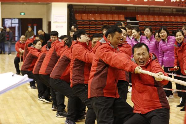 本次體育競(jìng)賽項(xiàng)目豐富多彩,共分為金融跨賽我當(dāng)先、儲(chǔ)蓄保險(xiǎn)步步高、余額跨越600億、財(cái)源滾滾風(fēng)火輪4個(gè)團(tuán)體比賽和轉(zhuǎn)型發(fā)展對(duì)標(biāo)賽單項(xiàng)比賽開展。各代表隊(duì)穿著整齊的運(yùn)動(dòng)服,喊著響亮的口號(hào),精神抖擻地步入會(huì)場(chǎng),展現(xiàn)了武郵人的颯爽英姿。比賽現(xiàn)場(chǎng)角逐激烈,參賽隊(duì)員精神抖擻,矯健的身姿,輕盈的步伐、拼搏的汗水、珍貴的隊(duì)友情……都在運(yùn)動(dòng)場(chǎng)上展現(xiàn)的淋漓盡致,展示了干部職工團(tuán)結(jié)協(xié)作、奮力拼搏的良好精神風(fēng)貌。隨著拔河對(duì)抗賽口令響起,隊(duì)員們一鼓作氣,卯足了勁,齊心協(xié)力,緊拉長繩,比賽場(chǎng)面幾度激烈萬分,難分勝負(fù),現(xiàn)場(chǎng)氣氛達(dá)到了一個(gè)又高潮。拉拉隊(duì)員們激情高漲、吶喊助威,賽場(chǎng)上笑聲不斷、喝彩不停。