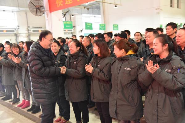 馬軍勝局長(zhǎng)與基層員工親切握手,感謝湖北郵政、武漢郵政干部員工對(duì)湖北經(jīng)濟(jì)發(fā)展做出的貢獻(xiàn),并向大家致以新春的祝福。他表示:“武漢郵區(qū)中心局見(jiàn)證了郵政企業(yè)的改革發(fā)展,面對(duì)郵電分營(yíng)初期的各種困難,武漢郵政干部員工迎難而上,在業(yè)務(wù)發(fā)展、機(jī)制改革方面取得了顯著成效。中心局業(yè)務(wù)量從投產(chǎn)時(shí)日均10萬(wàn)件增長(zhǎng)到現(xiàn)在的130多萬(wàn)件,說(shuō)明行業(yè)發(fā)展了,企業(yè)壯大了,科技手段先進(jìn)了,這離不開(kāi)各位工友的辛勤付出。”