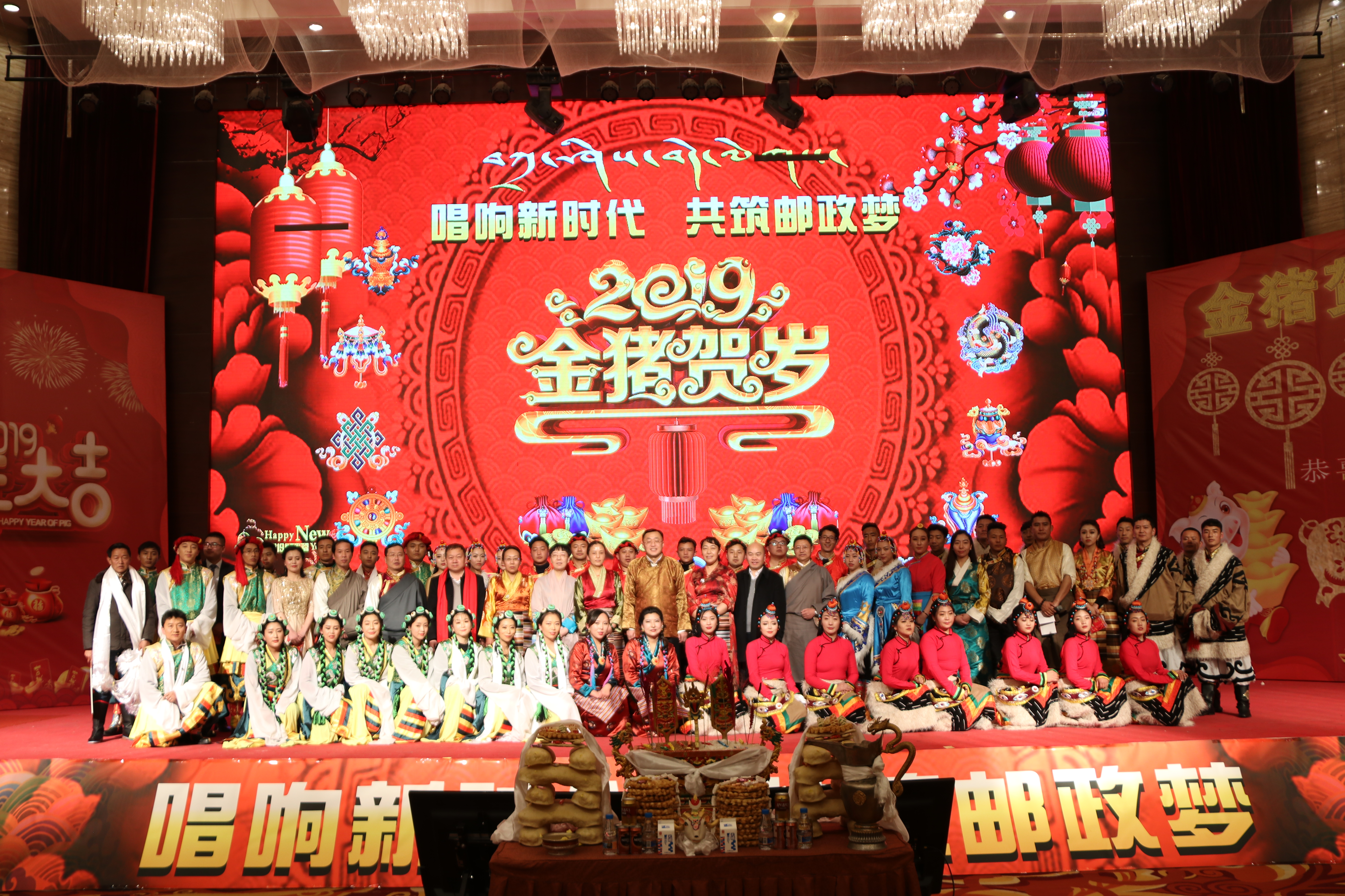 1月24日,在2019年新春佳節(jié)及藏歷新年即將來臨之際,中國郵政西藏分公司、郵儲銀行西藏分行、區(qū)寄遞事業(yè)部、拉薩市分公司聯(lián)合舉辦以“唱響新時代 共筑郵政夢”為主題的春節(jié)、藏歷新年聯(lián)歡晚會。出席本次聯(lián)歡會的有區(qū)分公司全體班子成員、郵儲銀行在家班子成員、區(qū)寄遞事業(yè)部班子成員及區(qū)分公司機關部室全體干部職工、其它單位三級副以上領導。會議還邀請了拉薩郵政單位的部分勞模代表和退休老職工,共計200余人。