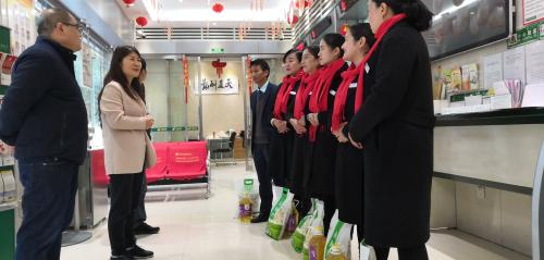 在南塘街支局,史主席對職工們良好的精神面貌給予了充分肯定,實地了解了支局旺季業(yè)務發(fā)展宣傳工作的落實,向網點負責人詳細詢問了余額、保險發(fā)展的具體情況。與網點主任座談,了解職工個人收入、業(yè)務發(fā)展獎勵對職工的激勵調動效果,并鼓勵南塘支局保持發(fā)展態(tài)勢,不斷超越自我,新增余額早日完成!史主席在網點為職工送上慰問品,祝愿職工們節(jié)日快樂、闔家幸福!