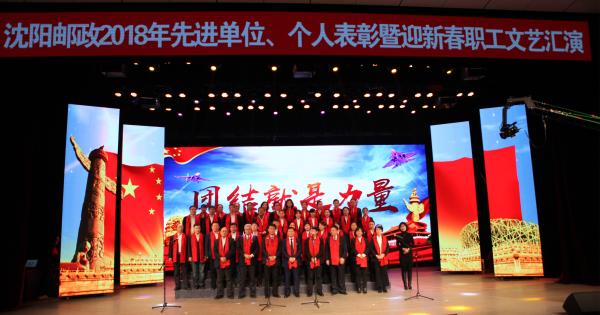 1月24日下午,沈陽市分公司在市文化宮劇場(chǎng)舉辦以“沈陽郵政·我的家”為主題的2018年先進(jìn)單位、個(gè)人表彰暨迎新春職工文藝匯演?;顒?dòng)現(xiàn)場(chǎng)燈火璀璨、磅礴大氣,一派喜慶景象,觀眾和演員臉上洋溢著歡樂的笑容。市分公司領(lǐng)導(dǎo)班子與離退休老同志、員工代表們歡聚一堂,共同慶賀碩果累累的2018年,迎接充滿希望的2019年。