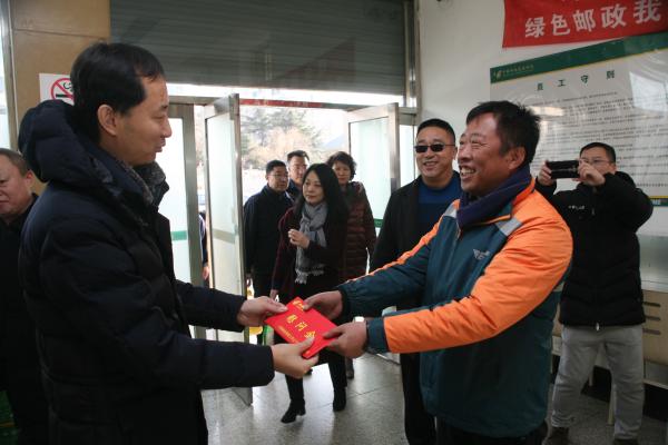春節(jié)前夕,省分公司黨組書(shū)記、總經(jīng)理谷德凱同志和班子成員分5組到省內(nèi)部分市開(kāi)展“送溫暖” 走訪慰問(wèn)勞動(dòng)模范、困難職工、支局班組和速遞攬投站等活動(dòng)。