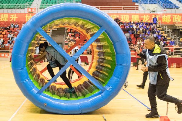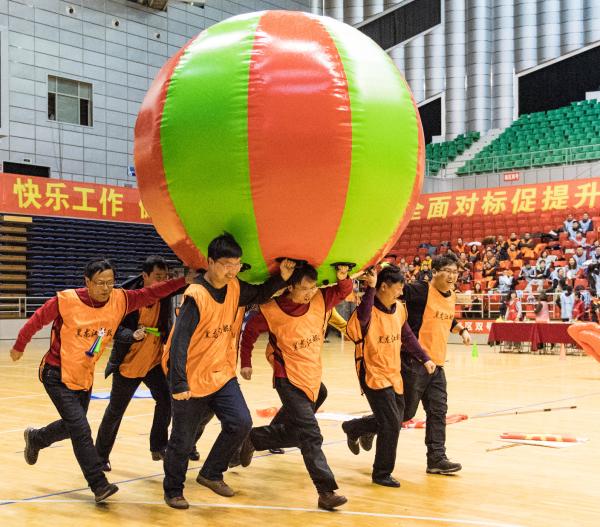 大賽設(shè)置了“眾人劃槳開大船”、“鴻運當(dāng)頭福運來”、“環(huán)環(huán)相扣緊攜手”、“眾志成城攀高峰”等8個項目,每一個項目都是團隊協(xié)作、智慧及力量的較量。紅、黃、藍(lán)、綠、橙、紫6支團隊隊名分別是鴻運當(dāng)頭隊、起航隊、發(fā)財隊、行動隊、活力橙隊和保證贏隊。6支團隊的成員在競賽場上士氣高昴、配合默契,奪冠的團隊振臂歡呼,失利的團隊蓄勢待發(fā),這里沒有放棄、沒有消沉。看,劉斌總經(jīng)理、馬葆生副總經(jīng)理、陳釗副總經(jīng)理與他們的隊員們在拔河場上氣吞山河、力挽狂瀾,趙志勇副總經(jīng)理、任宣組長帶領(lǐng)拉拉隊員高呼助威、不輸氣勢??諝饫铮瑵M滿的激情,感染著全場老、中、青三代郵政人的心;賽場上,縈繞著發(fā)自心底的吶喊聲和喝彩聲,讓每個人的心里都真切地感受到郵政人那種生機勃勃的斗志與無限美好的愿景。正如6支團隊名稱里所蘊含的深意一樣,黑龍江郵政人帶上對企業(yè)、對同事、對家人的祝福,帶上新的夢想,整裝起航,在2019年更廣闊的天空里展翅翱翔,追逐新的目標(biāo),譜寫新的篇章。