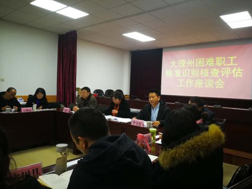 1月21日云南省總工會(huì)委托的全省困難職工精準(zhǔn)識(shí)別核查第三方評(píng)估機(jī)構(gòu)---云師大李學(xué)舒組長(zhǎng)一行,在大理州總工會(huì)召開(kāi)全州困難職工精準(zhǔn)識(shí)別核查評(píng)估工作座談會(huì)。州總工會(huì)、第三方評(píng)估組、大理州屬產(chǎn)業(yè)工會(huì)15個(gè)單位參加了會(huì)議。