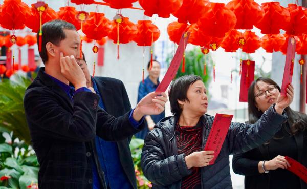 活動(dòng)現(xiàn)場(chǎng)布置了400條燈謎,有傳統(tǒng)燈謎,有時(shí)下流行的找不同、看圖猜人物、看圖猜成語(yǔ)、拼字等青年人喜歡的游戲燈謎,也有難度較大的象棋殘局燈謎,員工們聚集在燈謎前或冥思苦想,或三五成群小聲探討,猜出答案的員工各個(gè)喜笑顏開(kāi)?;顒?dòng)現(xiàn)場(chǎng)呈現(xiàn)一派歡樂(lè)祥和的節(jié)日景象。