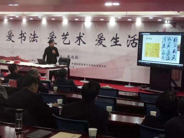 為落實全省郵政工作會議精神,傳承和弘揚中華傳統(tǒng)文化,提高機關(guān)干部文化氣質(zhì)和藝術(shù)修養(yǎng),3月1日,省分公司邀請書法名家秦元昌作客湖北郵政“文化大講堂”作書法講座。省分公司領(lǐng)導(dǎo),機關(guān)全體管理人員,直屬單位四級副以上人員及書法愛好者聽取了講座。省分公司副總經(jīng)理、工會主席魯先彪主持活動并講話。