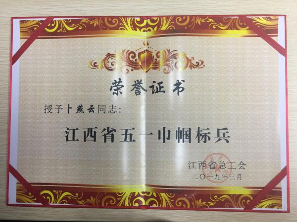 據(jù)悉,為大力弘揚(yáng)勞模精神、勞動(dòng)精神、工匠精神,宣傳女職工在推動(dòng)江西經(jīng)濟(jì)平穩(wěn)健康發(fā)展中作出的突出貢獻(xiàn),營(yíng)造勞動(dòng)關(guān)榮、技術(shù)寶貴、創(chuàng)造偉大的時(shí)代風(fēng)尚,進(jìn)一步激勵(lì)廣大女職工立足新時(shí)代、擔(dān)當(dāng)新使命、彰顯新作為、展現(xiàn)新風(fēng)采,江西省總工會(huì)決定授予80個(gè)集體為2018年度“江西省五一巾幗標(biāo)兵崗” 榮譽(yù)稱號(hào)、80名同志為2018年度“江西省五一巾幗標(biāo)兵”榮譽(yù)稱號(hào)、20名同志為2018年度“江西省女創(chuàng)業(yè)帶頭人”榮譽(yù)稱號(hào)。(江西省郵政工會(huì))