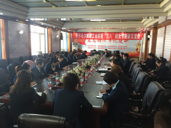 3月7日上午,在“三八”國際婦女節(jié)來臨之際,齊齊哈爾市郵政工會舉辦慶?!叭恕惫?jié)女職工座談交流會,邀請不同崗位的優(yōu)秀女職工代表歡聚一堂,暢談工作理想,交流生活經(jīng)驗(yàn),共同慶祝自己的節(jié)日。市分公司總經(jīng)理、黨委書記張玉辰同志,副總經(jīng)理、工會主席任麗杰同志和機(jī)關(guān)各單位負(fù)責(zé)人出席座談會,與女職工代表共話女職工建功立業(yè),共慶節(jié)日。