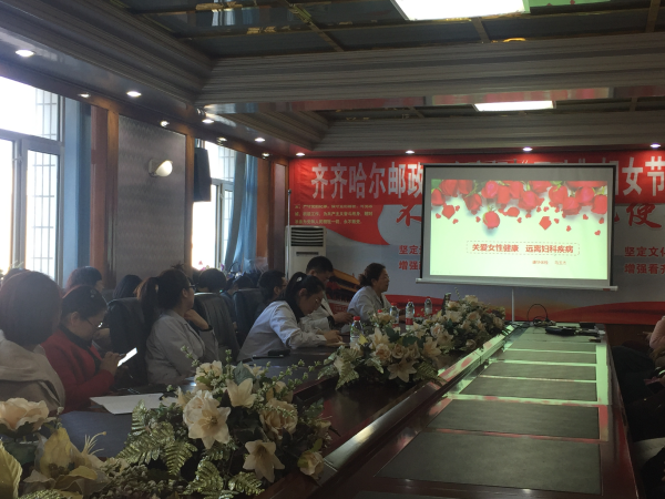 在“三八”國(guó)際勞動(dòng)?jì)D女節(jié)來(lái)臨之際,齊齊哈爾郵政工會(huì)為了更好地關(guān)心女職工的身心健康,普及女職工的健康知識(shí),讓女職工能以健康的體魄、充足的精力投入到崗位工作當(dāng)中,3月6日下午舉辦了“女職工健康知識(shí)講座”,專(zhuān)門(mén)聘請(qǐng)了齊齊哈爾市建華醫(yī)院的田云臣、佘軍、馬玉杰主任授課,市分公司部分女職工代表到場(chǎng)聆聽(tīng)了本次講座。