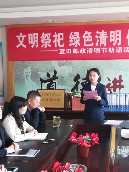 春風(fēng)送暖,又逢清明,再過兩天,2019年清明節(jié)就要到來,在這緬懷先烈、祭奠逝者、追思故人的傳統(tǒng)節(jié)日到來之際,為形成“綠色清明、文明祭祀”的良好氛圍,以健康、文明、低碳、有序的形式進(jìn)行,提升城鄉(xiāng)文明形象,藍(lán)田郵政分公司于4月3日組織職工開展“文明祭祀,綠色清明”詩(shī)歌朗誦活動(dòng)。