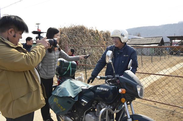 圖為中央電視臺記者跟班采訪鄉(xiāng)郵員金仁哲