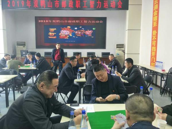 雙鴨山市郵政工會(huì)于4月4日上午,舉辦了2019年全市郵政職工三打一比賽活動(dòng)。此次賽事是為了不斷豐富全市郵政職工的業(yè)余文化生活,增進(jìn)職工間的溝通與交流而舉辦的,同時(shí)也將選拔優(yōu)秀選手參加省郵政工會(huì)舉辦的2019年全省郵政職工智力運(yùn)動(dòng)會(huì)。三打一比賽共有20名選手參加,分為五個(gè)小組。上午8時(shí)30分,比賽拉開帷幕,市分公司副總經(jīng)理、工會(huì)主席時(shí)紅軍親臨現(xiàn)場致開幕詞。大家在歡聲笑語中進(jìn)行了抽簽和分組等程序后立即進(jìn)行了比賽。賽場上雖然緊張但是卻不乏活潑友好氛圍,其中既要有合作又要有爭斗,三個(gè)一伙的也會(huì)不時(shí)用眼神進(jìn)行交流和暗示,惹的莊家不得不微笑著提醒“注意牌風(fēng)哈”;先進(jìn)行完比賽的選手們駐足觀戰(zhàn)前四名的爭奪賽,比賽在歡樂的氣氛中共進(jìn)行了近4個(gè)小時(shí)才結(jié)束。