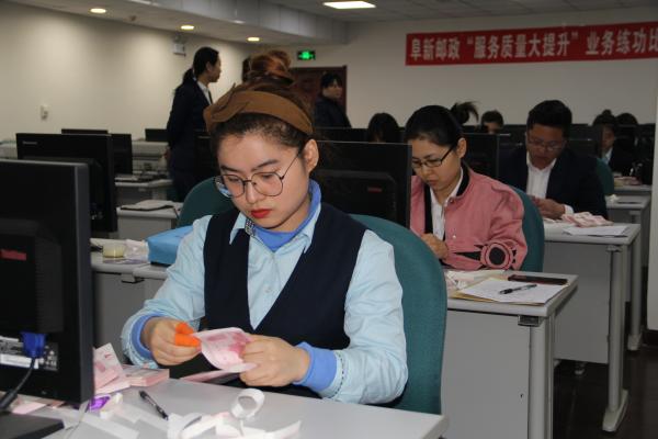 4月29日,為迎接“五一”勞動節(jié)的到來,阜新郵政舉辦了“服務(wù)質(zhì)量大提升”業(yè)務(wù)練功比賽。在市分公司領(lǐng)導的高度重視下,工會、人力資源部、服務(wù)質(zhì)量部等部門緊密配合,統(tǒng)籌部署,結(jié)合業(yè)務(wù)發(fā)展需要合理設(shè)置了比賽項目。各相關(guān)單位認真擬訂培訓計劃,科學安排通信生產(chǎn),嚴密組織模擬訓練,嚴格按照標準選拔,取得了顯著效果。全公司76名職工參加了六大工種20個項目的比賽,通過激烈角逐,最終評選出各工種冠亞季軍各一名。