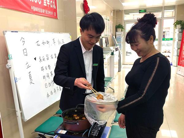 當(dāng)天清晨,該支局員工們親自動(dòng)手,洗雞蛋、放茶葉、煮雞蛋一氣呵成,兩個(gè)小時(shí)后,香氣撲人的茶葉蛋已準(zhǔn)備好。營(yíng)業(yè)網(wǎng)點(diǎn)開門后,員工們將茶葉蛋送到每一位前來辦理業(yè)務(wù)的客戶手中,并送上立夏日吃雞蛋可以祈禱夏日平安等祝福。收到雞蛋和祝福的客戶們都對(duì)郵政的服務(wù)贊不絕口。