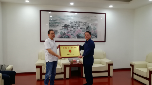 5月16日下午,池州市總工會(huì)黨組書記、副主席程軍,副主席姚國(guó)慶,市總工會(huì)副調(diào)研員、市直工會(huì)主席蘇朋樂(lè)等領(lǐng)導(dǎo)一行蒞臨池州市郵政分公司,現(xiàn)場(chǎng)頒發(fā)“安徽省五一勞動(dòng)獎(jiǎng)狀”和“安徽省勞動(dòng)競(jìng)賽先進(jìn)集體”榮譽(yù)獎(jiǎng)牌。 池州市郵政分公司黨委書記、總經(jīng)理俞曉虎,工會(huì)主席、副總經(jīng)理錢鵬等領(lǐng)導(dǎo)參加了授牌儀式。