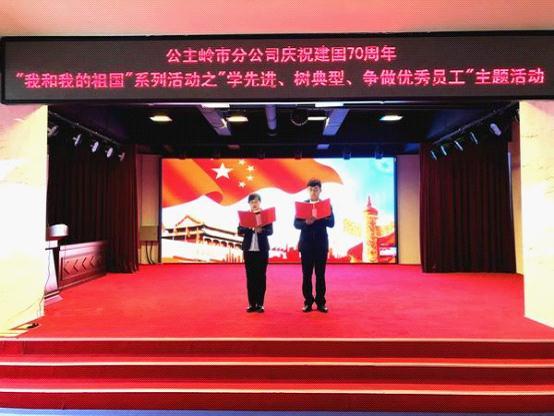 5月20日,公主嶺市分公司舉辦慶祝建國(guó)70周年“我和我的祖國(guó)”系列活動(dòng)之“學(xué)先進(jìn)、樹(shù)典型、爭(zhēng)做優(yōu)秀員工”主題活動(dòng),分公司全體黨員、部分青年代表參加。