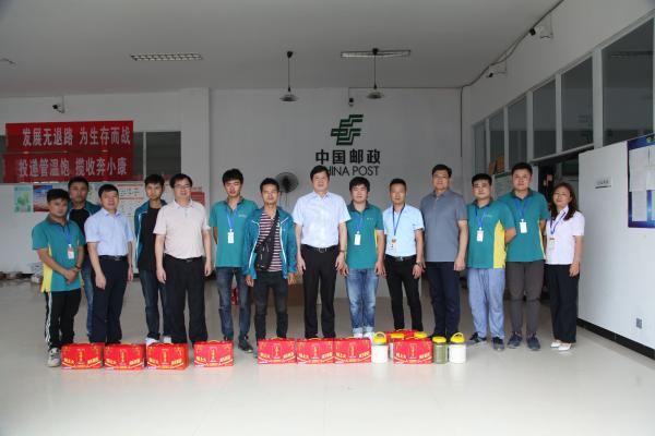 抵達(dá)南河攬投部時(shí),張國(guó)壽一行和攬投員們一一握手,代表省分公司黨組向基層一線員工表示致敬,并為他們送上了綠豆、白糖、飲料等防暑降溫慰問品,把省分公司黨組的深切關(guān)懷送到基層一線。張國(guó)壽與攬投部負(fù)責(zé)人、攬投員進(jìn)行了親切交談,強(qiáng)調(diào)在確保投遞時(shí)限的同時(shí),要時(shí)刻銘記生產(chǎn)安全,并囑咐景德鎮(zhèn)市分公司要切實(shí)關(guān)心一線員工身心健康,采取有效措施防暑降溫,解決基層一線員工的實(shí)際困難,確保生產(chǎn)安全和穩(wěn)定。