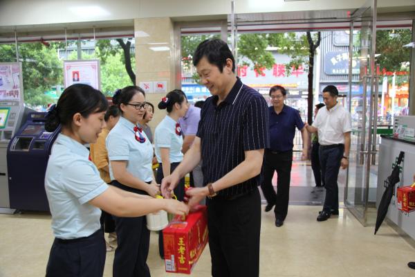 在東一路郵政儲(chǔ)蓄營(yíng)業(yè)所,張國(guó)壽一行和營(yíng)業(yè)員們一一握手,為他們送上了綠豆、白糖、飲料等防暑降溫慰問品,還詳細(xì)了解一線員工在業(yè)務(wù)發(fā)展、工作生活中遇到的困難和所需要的幫助,認(rèn)真詢問了員工薪酬、網(wǎng)點(diǎn)收入、利潤(rùn)、基礎(chǔ)客戶等情況。