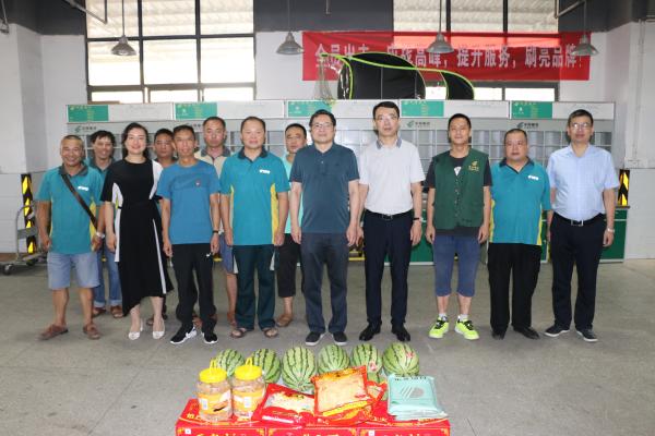 炎炎盛夏送清涼,8月6日,江西省分公司黨組成員、省寄遞事業(yè)部常務(wù)副總經(jīng)理丁永紅帶領(lǐng)省郵政工會副主席胡萍、省寄遞事業(yè)部綜合部總經(jīng)理左五星深入萍鄉(xiāng)郵政基層一線網(wǎng)點開展“夏送清涼”活動。