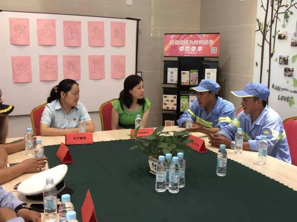 2019年8月13日上午9:30,長寧郵政支局聯(lián)合江蘇街道社區(qū)黨建服務(wù)中心,在長寧郵政支局活動(dòng)室,共同開展愛心接力站慰問交流會(huì)。 希望能借此了解一線戶外工作者的日常,面對面傾聽他們對愛心接力站使用至今的想法以及改善建議。長寧郵政支局支局長曹雯,支部書記黃芳親自出席該活動(dòng),為交通協(xié)管員們,環(huán)衛(wèi)工人代表送上夏日慰問禮品,表達(dá)了對他們工作的高度認(rèn)可,感謝他們?yōu)檫@座城市的默默付出。