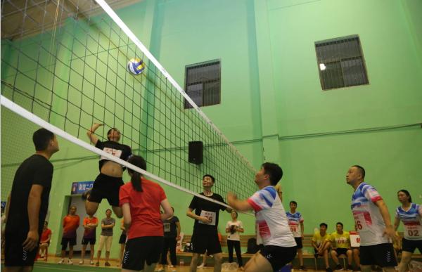 比賽開始前,現(xiàn)場就已經(jīng)熱鬧非常。各參賽隊員或聚在一起排兵布陣,或臨時組隊預(yù)熱練習(xí)……一聲令下,各參賽隊員紛紛摩拳擦掌,精神抖擻走上賽場,全神貫注、蓄勢待發(fā)。高拋發(fā)球、迅猛接球、穩(wěn)健二傳、急速扣殺……每一位隊員都全力以赴,默契配合,展現(xiàn)了良好的團(tuán)隊協(xié)作精神和競技風(fēng)貌。場上廝殺淋漓酣暢,場下啦啦隊助威跌宕起伏,整個場面熱火朝天。