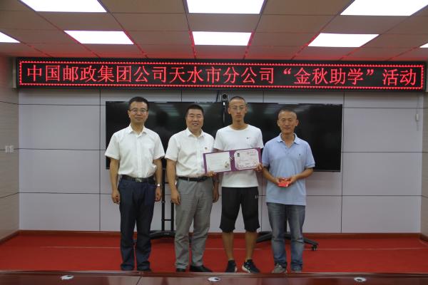 天水市分公司領(lǐng)導(dǎo)殷切期望受到資助的同學(xué)志存高遠(yuǎn),自強(qiáng)不息,早日成才,用實(shí)際行動踐行團(tuán)結(jié)、友愛、互助的良好風(fēng)尚,把分公司黨委、工會的真情關(guān)懷轉(zhuǎn)化為回報社會的強(qiáng)大動力,努力在報效祖國、回報社會、建設(shè)家鄉(xiāng)的偉大事業(yè)中奉獻(xiàn)青春智慧,實(shí)現(xiàn)人生價值。