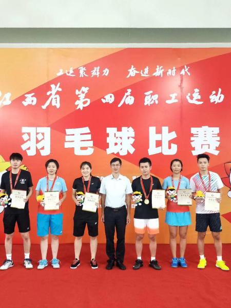 經(jīng)過5天的激烈比拼,江西省郵政分公司代表隊(duì)在比賽中榮獲佳績:王星亮、劉靖榮獲省產(chǎn)業(yè)工會(huì)(局、系統(tǒng)工會(huì))組混合雙打冠軍;劉靖、封力卉榮獲省產(chǎn)業(yè)工會(huì)(局、系統(tǒng)工會(huì))組女子雙打季軍;任瑛榮獲省產(chǎn)業(yè)工會(huì)(局、系統(tǒng)工會(huì))組女子單打第六名;江西省郵政分公司代表隊(duì)榮獲省產(chǎn)業(yè)工會(huì)(局、系統(tǒng)工會(huì))組女子團(tuán)體亞軍和江西省第四屆職工運(yùn)動(dòng)會(huì)羽毛球比賽體育道德風(fēng)尚獎(jiǎng);王星亮、劉靖(個(gè)人)榮獲江西省第四屆職工運(yùn)動(dòng)會(huì)羽毛球比賽體育道德風(fēng)尚獎(jiǎng)。 (江西省郵政工會(huì))