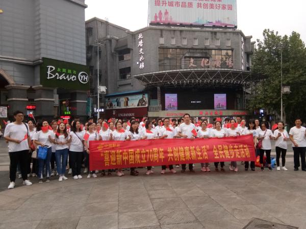 為迎接新中國(guó)成立70周年,營(yíng)造積極向上的企業(yè)文化氛圍,同時(shí)為“攜手健步走,活過(guò)99“活動(dòng)加大宣傳造勢(shì)。9月6日傍晚,重慶市北碚分公司組織70余名職工開展了“喜迎新中國(guó)成立70周年 共創(chuàng)健康新生活”全員健步走活動(dòng)。全體員工統(tǒng)一著裝,圍繞北碚人流量最密集區(qū)域,通過(guò)高舉五星紅旗分兩路開展健步運(yùn)動(dòng),主動(dòng)向周邊市民和過(guò)路行人介紹活動(dòng)目的并邀請(qǐng)合影打卡的方式,吸引了市民的廣泛參與和頻頻點(diǎn)贊,同時(shí)發(fā)放定制宣傳折頁(yè)引導(dǎo)市民去附近營(yíng)業(yè)廳領(lǐng)取小禮品,增進(jìn)網(wǎng)點(diǎn)客流量,進(jìn)一步擴(kuò)大了活動(dòng)宣傳力度。經(jīng)過(guò)一小時(shí)的健步行走和宣傳,最后全體員工手持紅旗在文化廣場(chǎng)匯合并現(xiàn)場(chǎng)合唱《歌唱祖國(guó)》向祖國(guó)致敬,將活動(dòng)氛圍推向了最高潮。據(jù)悉,此次活動(dòng)得到北碚電視臺(tái)的關(guān)注和現(xiàn)場(chǎng)采訪,進(jìn)一步提升了郵政的企業(yè)形象及公眾認(rèn)知度。