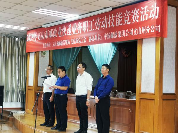9月10日下午,文山州郵政管理局、文山市總工會(huì)在文山州郵政分公司七樓會(huì)議廳舉行“2019年文山市郵政業(yè)快遞業(yè)務(wù)職工勞動(dòng)技能競(jìng)賽”活動(dòng),來自文山郵政、郵政速遞、韻達(dá)、中通、申通、圓通、百世、順豐、品駿、德邦、京東、天天、優(yōu)速、蘇寧等15家企業(yè)優(yōu)選出的30余名選手參賽。